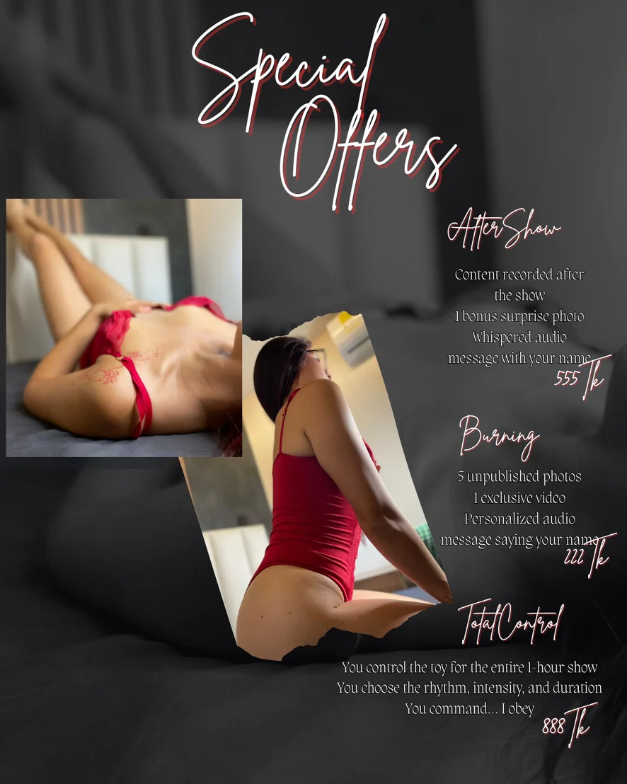 Erotic Dance, Spanking, Camel Toe, Striptease, Heels, Ahegao, Fingering, Foot Fetish, Smoking, Humiliation, Jerk-off Instruction, Role Play, Massage, Masturbation, Topless, Dirty Talk, Blowjob, Tittyfuck, Handjob, Orgasm, Footjob, Hardcore, Oil Show, Cowgirl, Twerk, Gagging