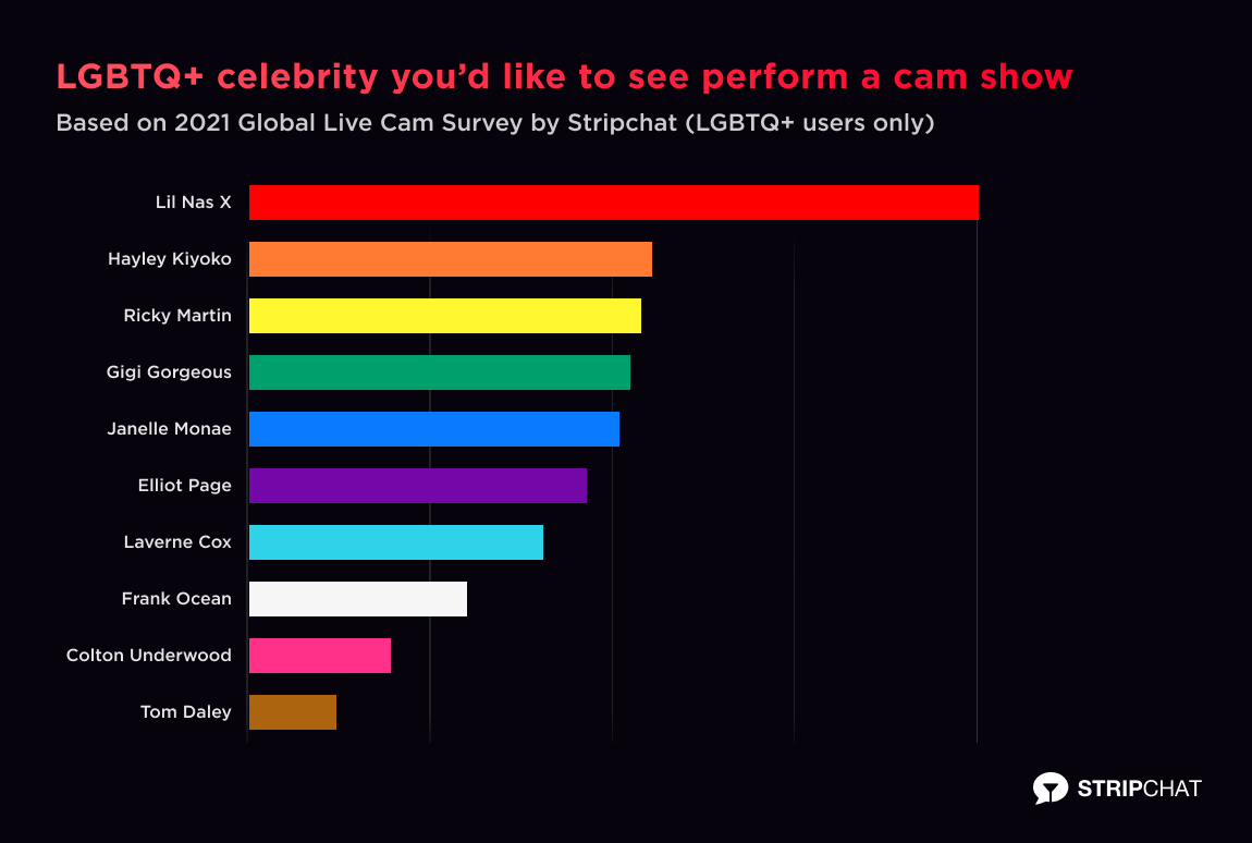 We asked our members which LGTBQ+ celebrity they’d most like to go private with. Out of nearly 30 celebrities, Lil Nas X was the clear winner, taking home almost of the total vote. Men, women, trans — everyone loves Montero.