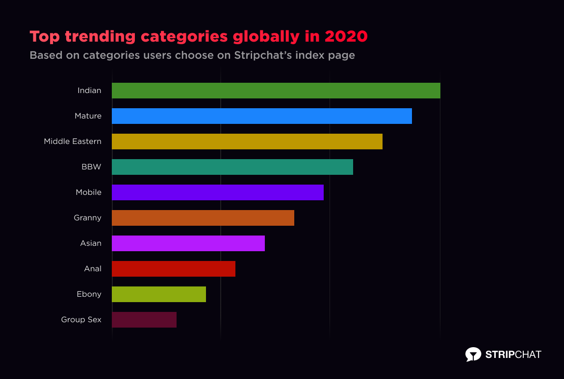 We learned a lot about our users in 2020 as lockdowns brought loneliness and revealed new preferences in girls, guys, trans, or couples. Users in the US took a new liking to BBW, Mature and Ebony models. At the same time, people worldwide turn to camming to battle pandemic fatigue: Here were the Top 10 most popular camming categories of 2020, including live sex BBW.