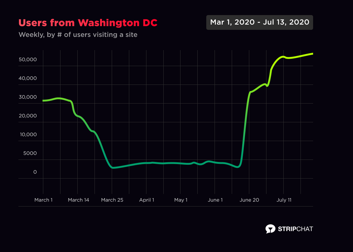 If you are curious about whether US models followed the trend of registering on Stripchat to cover their bills in 2020 or not, we’ve also seen a spike in registrations following the lockdown between March and April.
