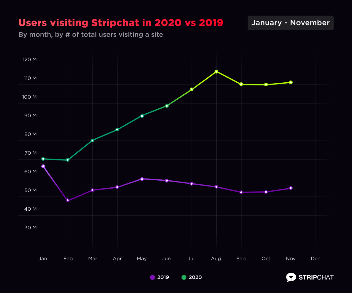 Live Cam industry sees a huge spike in traffic following the lockdown in 2020. Welcome to Stripchat, your one-stop destination when seeking the largest and most exciting online entertainment community for adults. Having hundreds of millions of users yearly, we acknowledge the value of being transparent and sharing our data with the world to introduce people globally to the live cam industry.