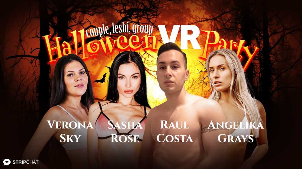 Pornstars Verona Sky, Angelika Grays, Sasha Rose, and Raul Costa to celebrate Halloween on Stripchat.